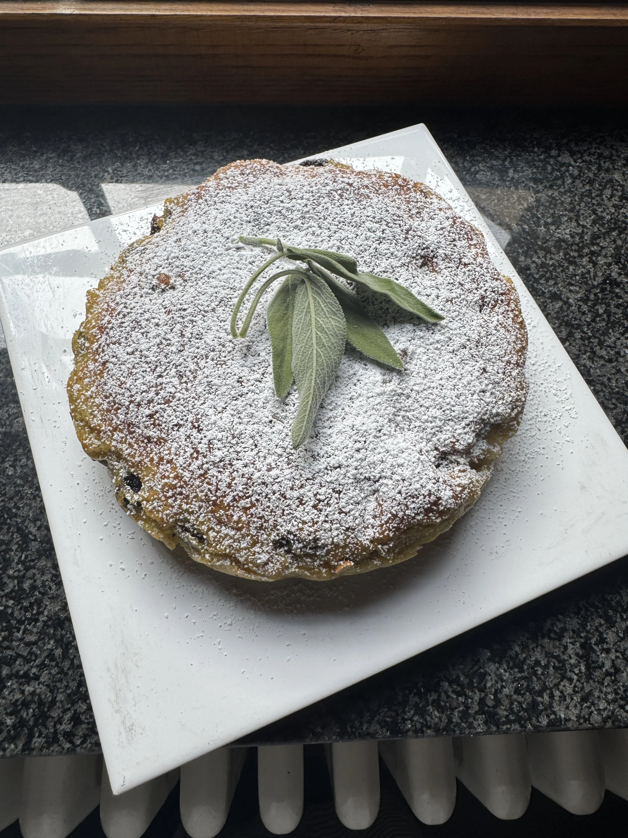 It was interesting.. The fine semolina was too heavy so a little on the pancake side of things, but the sage was a win. I baked a couple in pots and sent one down the road to the lovely Madeleine and Joe who had invited us to the olive oil/wine gathering the night before last.
