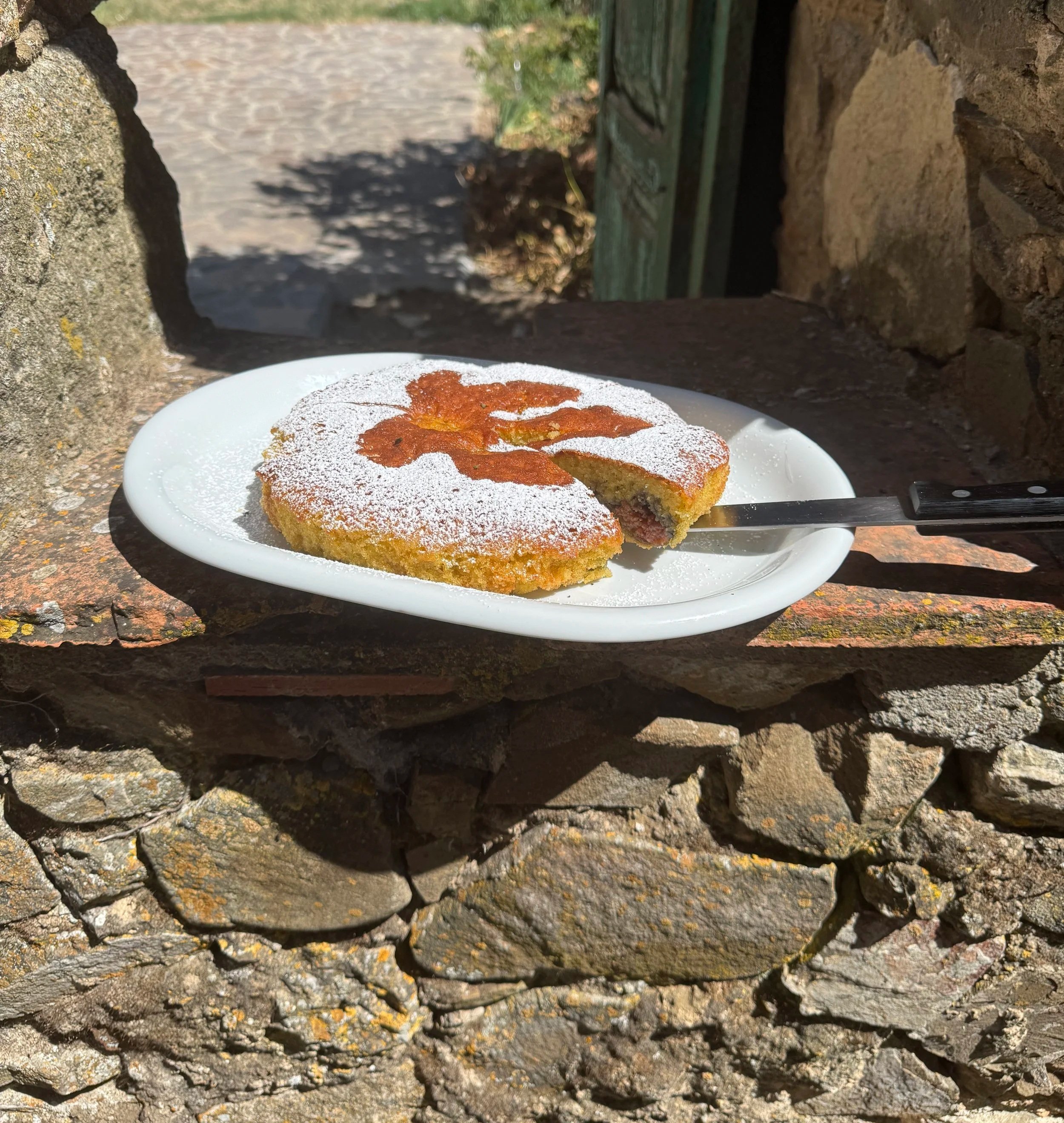 I am going to use my trusted almond flour cake recipe from the beginning of the blog but will be adding half fig leaf infused oil, half sunflower oil and lining the leaky cake tin with blanched fig leaves to impart flavour and stop the spills. Look at the colour of that oil mix! As the top was browning quickly I added a couple of leaves to the top to help while in the oven. I peeled the leaves off the under side of the cake before serving but really should have served upside down they looked so great!